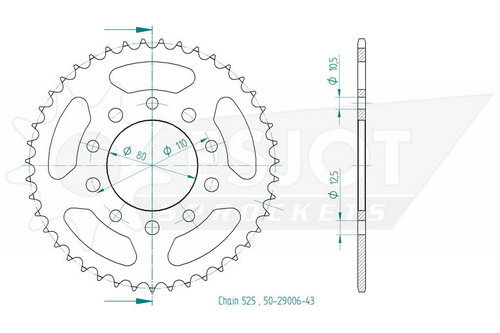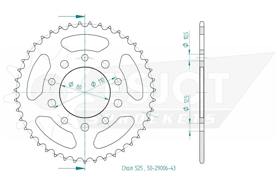 Kettenrad 43 Zähne Stahl 525er Teilung (5/8x5/16)