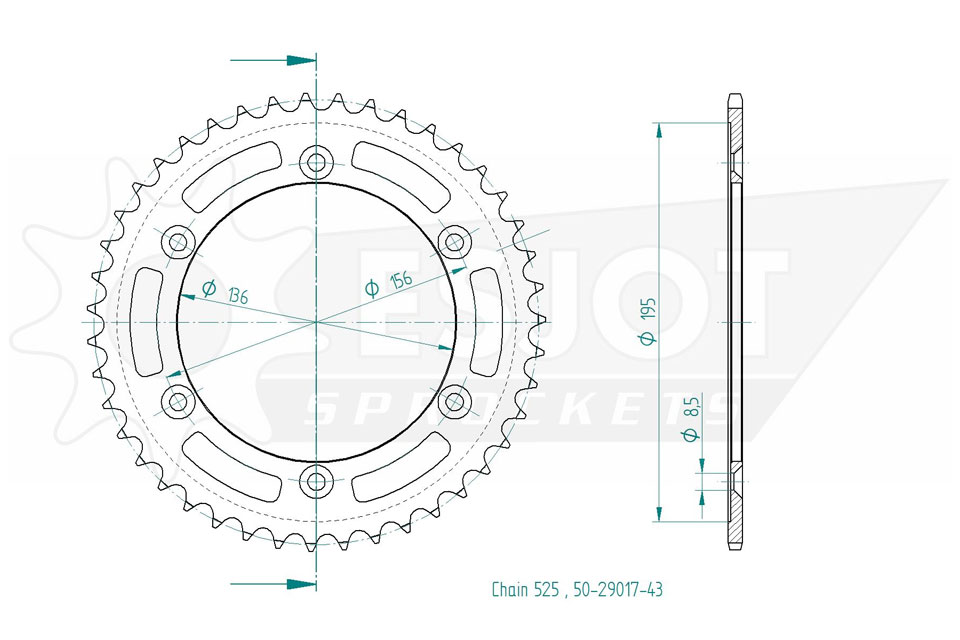 Kettenrad 43 Zähne Stahl 525er Teilung (5/8x5/16)