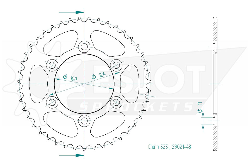 Kettenrad 43 Zähne Stahl 525er Teilung (5/8x5/16)