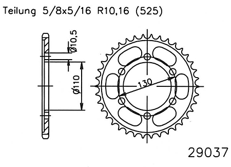 Kettenrad 43 Zähne Stahl 525er Teilung (5/8x5/16)