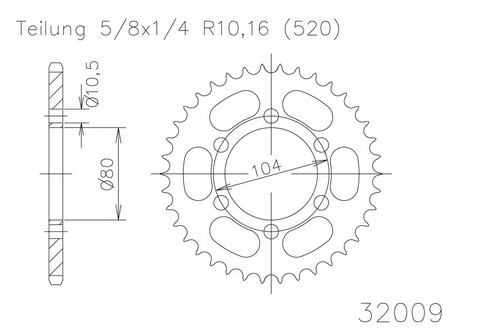 Kettenrad 43 Zähne Stahl 520er Teilung (5/8x1/4)