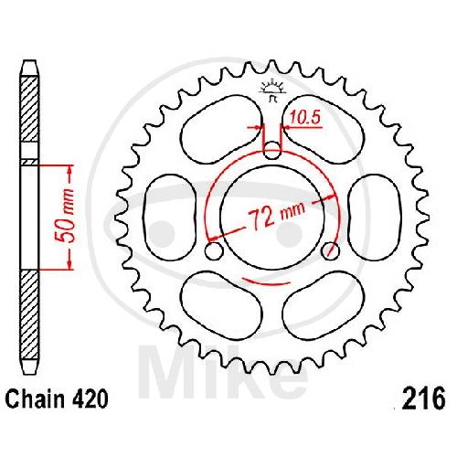 Kettenrad, 43Z, Teil.: 420, Innen Ø : 050, Lochkr.: 072