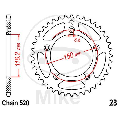 Kettenrad, 43Z, Teil.: 520, Innen Ø : 116, Lochkr.: 150
