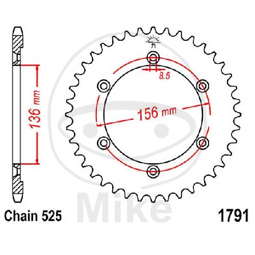Kettenrad, 43Z, Teil.: 525, Innen Ø : 136, Lochkr.: 156