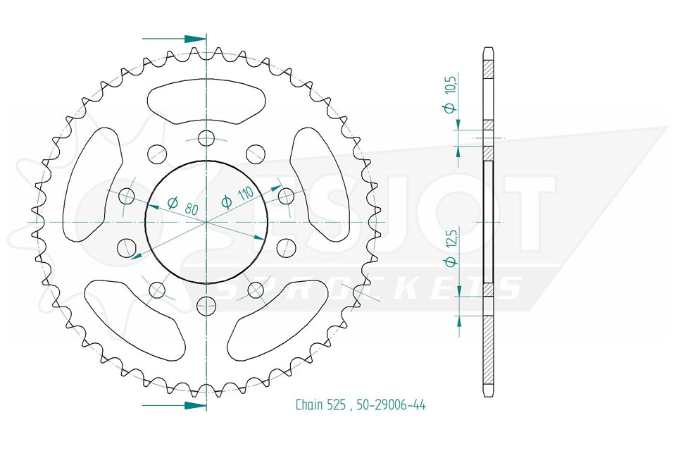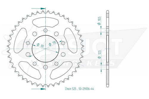 Kettenrad 44 Zähne Stahl 525er Teilung (5/8x5/16)