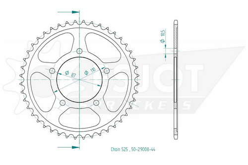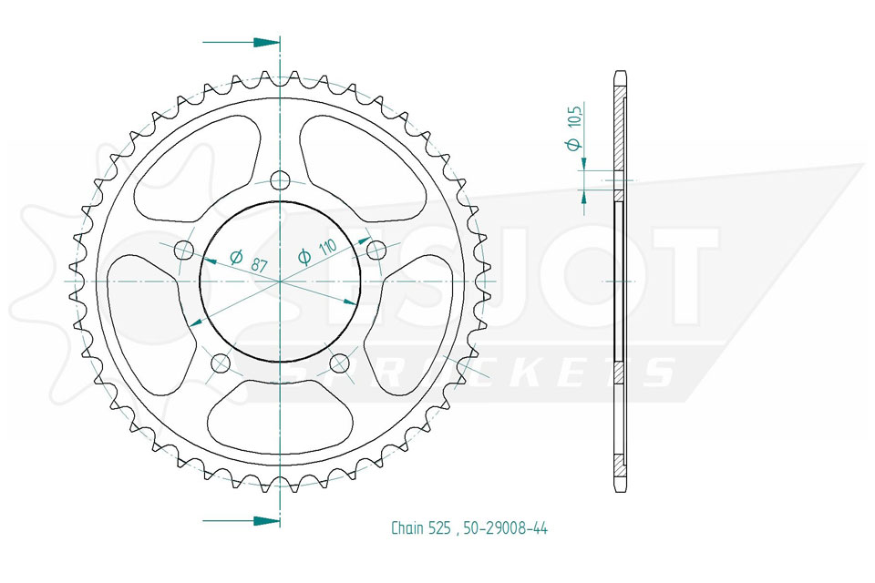 Kettenrad 44 Zähne Stahl 525er Teilung (5/8x5/16)