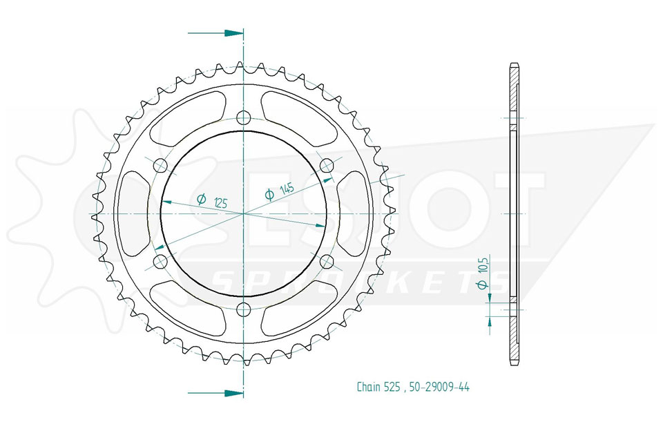 Kettenrad 44 Zähne Stahl 525er Teilung (5/8x5/16)
