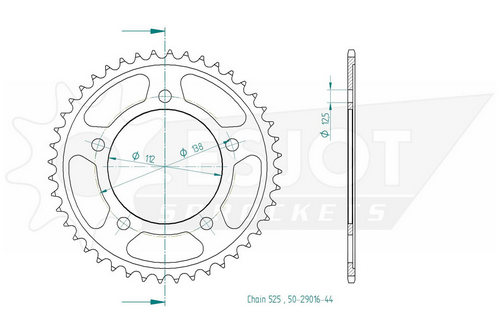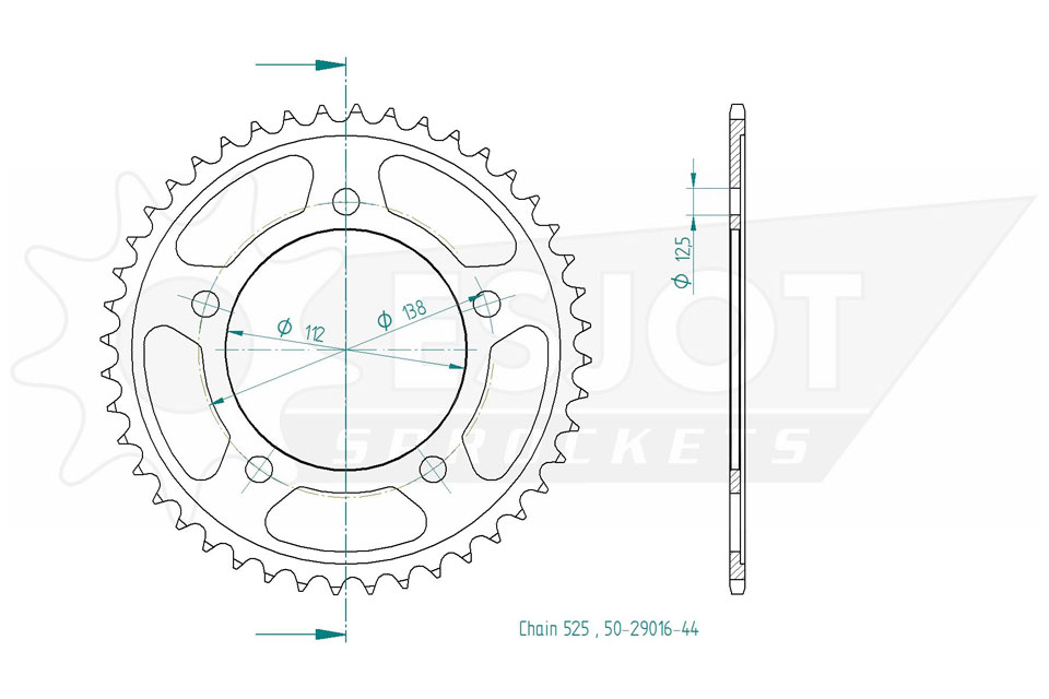 Kettenrad 44 Zähne Stahl 525er Teilung (5/8x5/16)