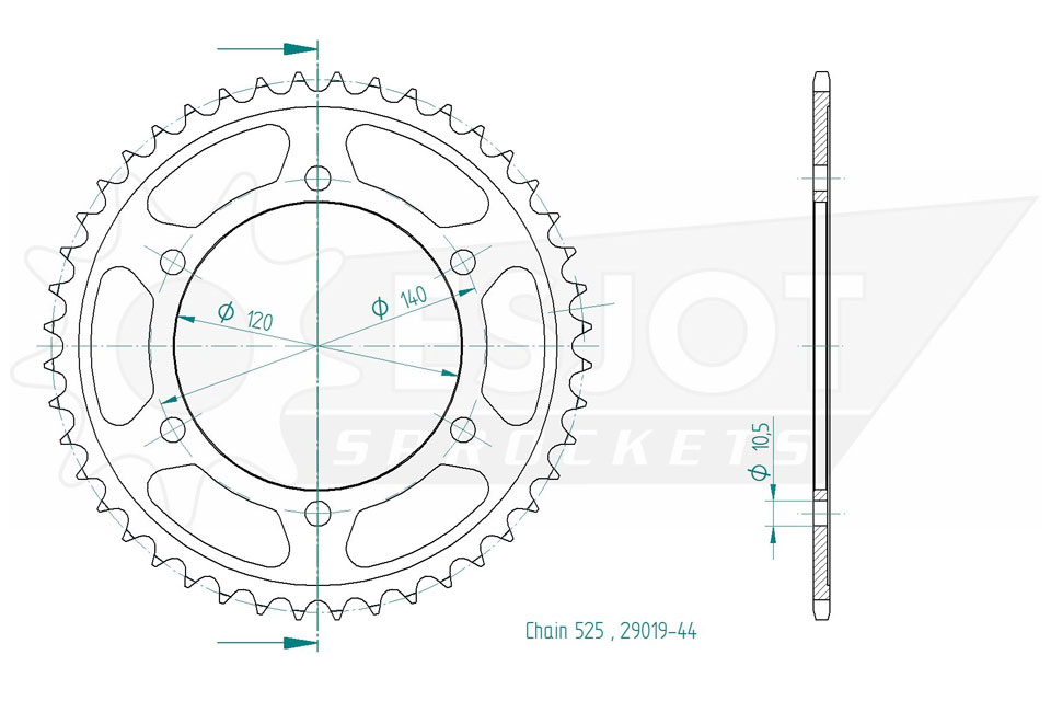 Kettenrad 44 Zähne Stahl 525er Teilung (5/8x5/16)