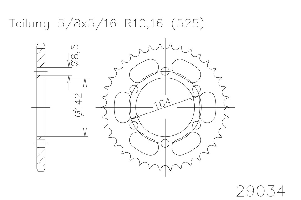 Kettenrad 44 Zähne Stahl 525er Teilung (5/8x5/16)