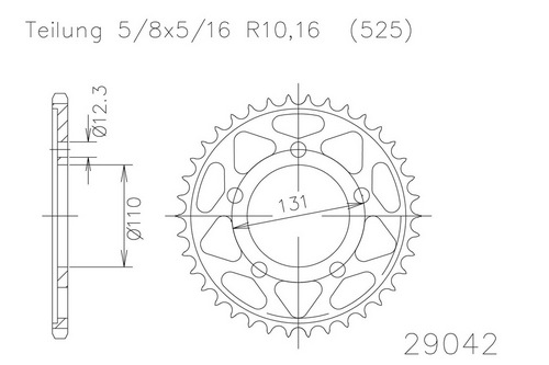 Kettenrad 44 Zähne Stahl 525er Teilung (5/8x5/16)