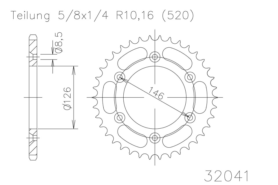 Kettenrad 44 Zähne Stahl 520er Teilung (5/8x1/4)