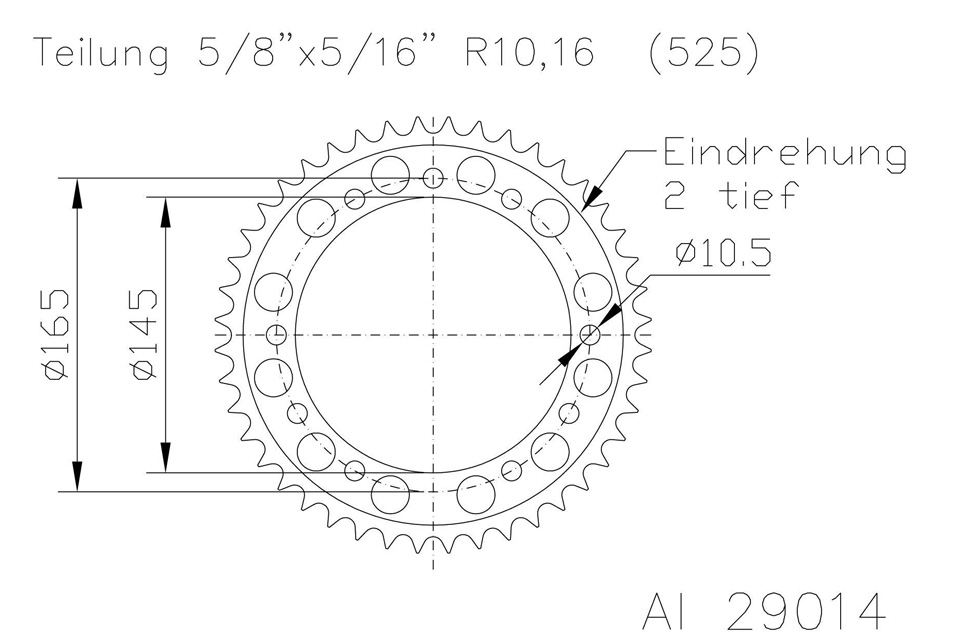 Kettenrad 44 Zähne Alu 525er Teilung (5/8x5/16)