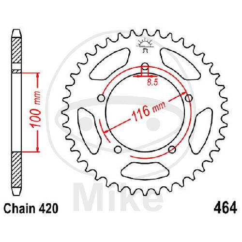 Kettenrad, 44Z, Teil.: 420, Innen Ø : 100, Lochkr.: 116