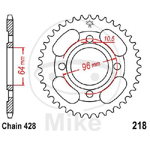 Kettenrad, 44Z, Teil.: 428, Innen Ø : 064, Lochkr.: 096