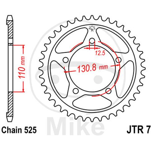 Kettenrad, 44Z, Teil.: 525, Innen Ø : 110, Lochkr.: 130.8