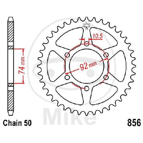 Kettenrad, 44Z, Teil.: 530, Innen Ø : 074, Lochkr.: 092