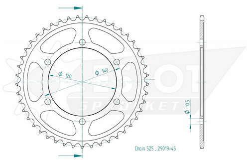 Kettenrad 45 Zähne Stahl 525er Teilung (5/8x5/16)