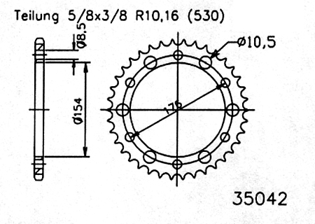 Kettenrad 45 Zähne Stahl 530er Teilung (5/8x3/8)