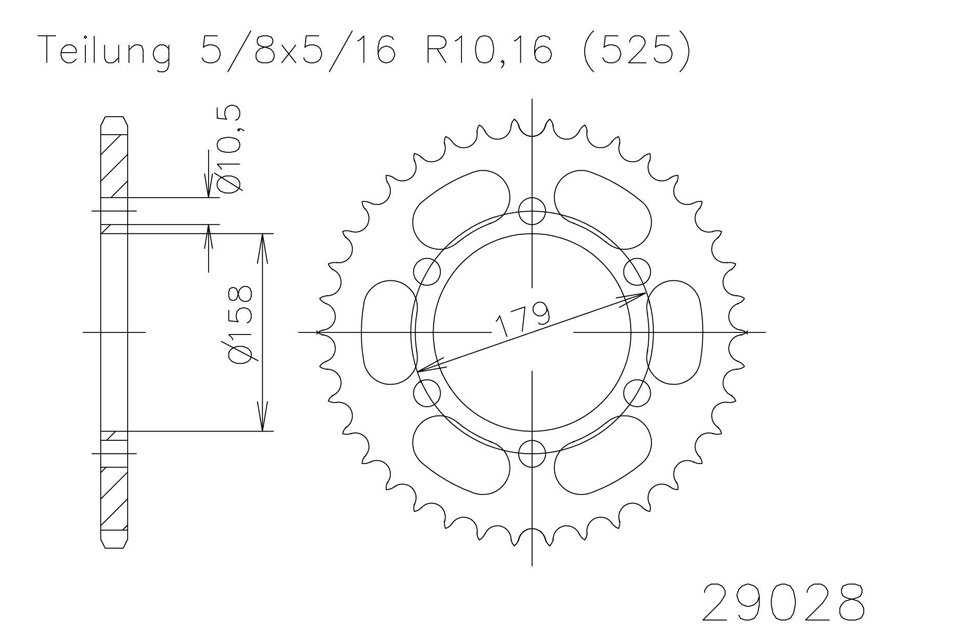 Kettenrad 45 Zähne Stahl 525er Teilung (5/8x5/16)