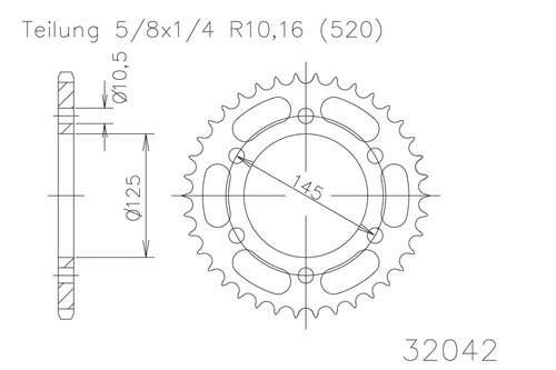Kettenrad 45 Zähne Stahl 520er Teilung (5/8x1/4)
