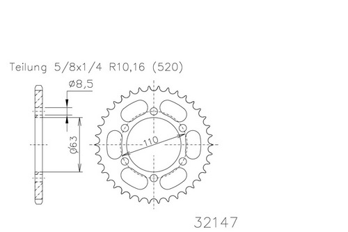 Kettenrad 45 Zähne Stahl 428er Teilung (1/2x5/16)