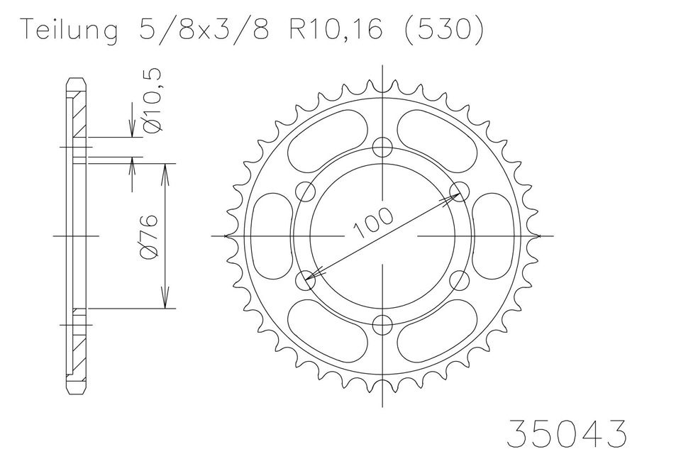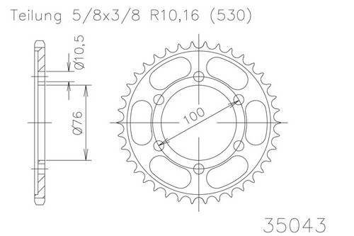 Kettenrad 45 Zähne Stahl 530er Teilung (5/8x3/8)