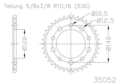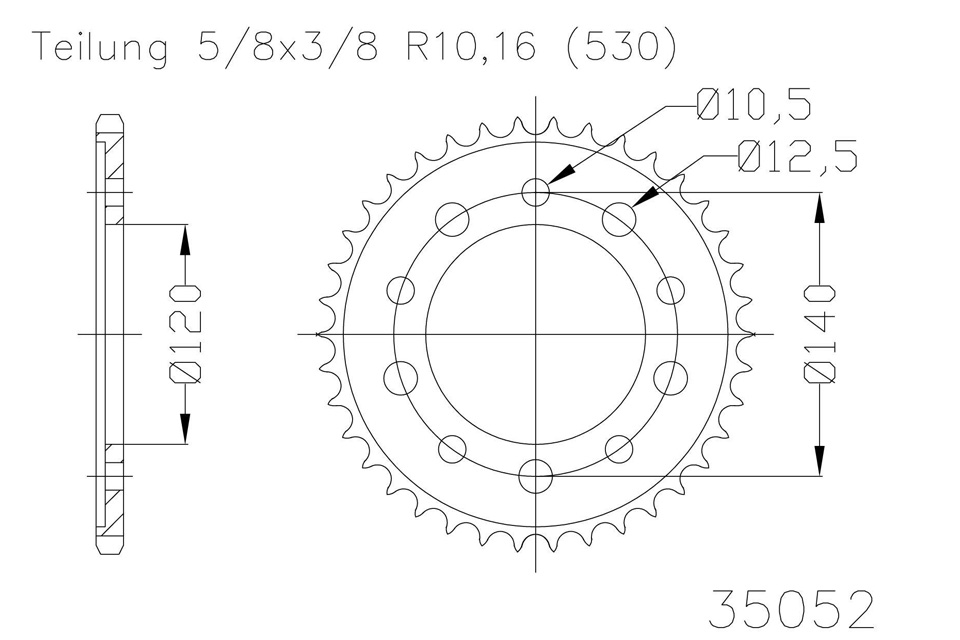 Kettenrad 45 Zähne Stahl 530er Teilung (5/8x3/8)