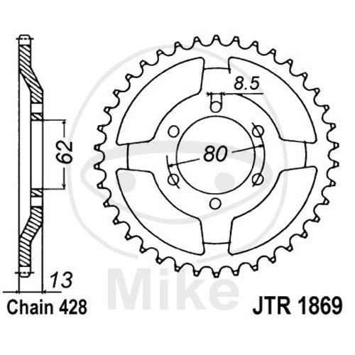 Kettenrad, 45Z, Teil.: 428, Innen Ø : 062, Lochkr.: 080