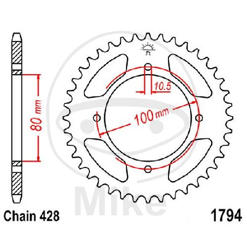 Kettenrad, 45Z, Teil.: 428, Innen Ø : 080, Lochkr.: 100