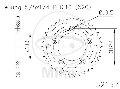 Kettenrad, 45Z, Teil.: 520 schwarz, Innen Ø : 100, Lochkr.: 124