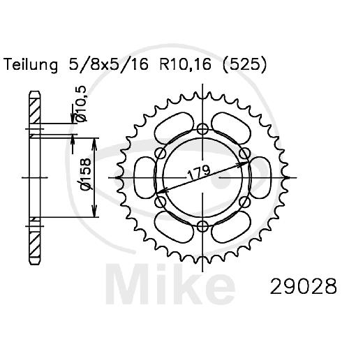 Kettenrad, 45Z, Teil.: 525 schwarz, Innen Ø : 158, Lochkr.: 179