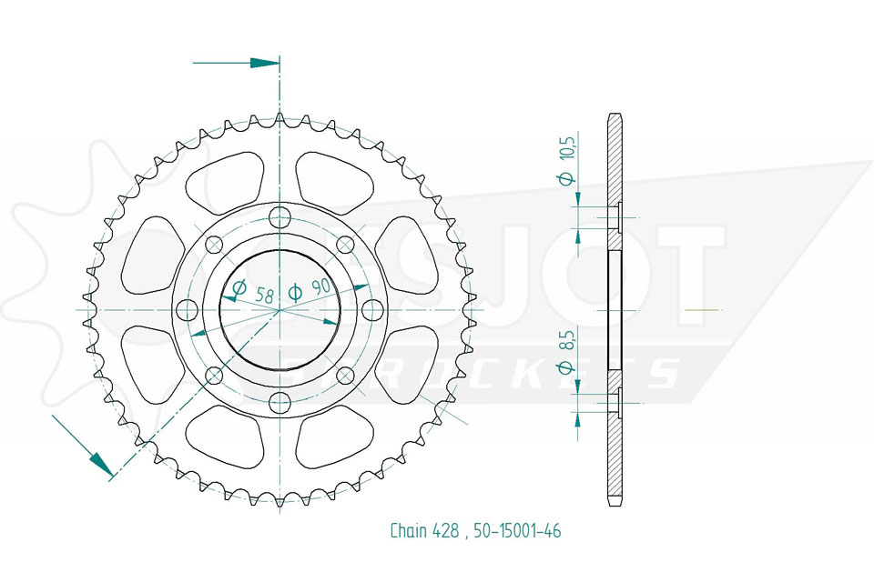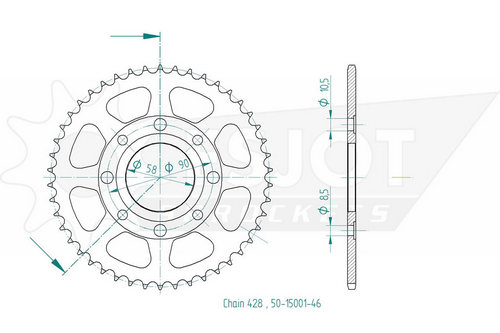Kettenrad 46 Zähne Stahl 428er Teilung (1/2x5/16)