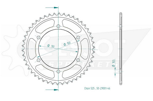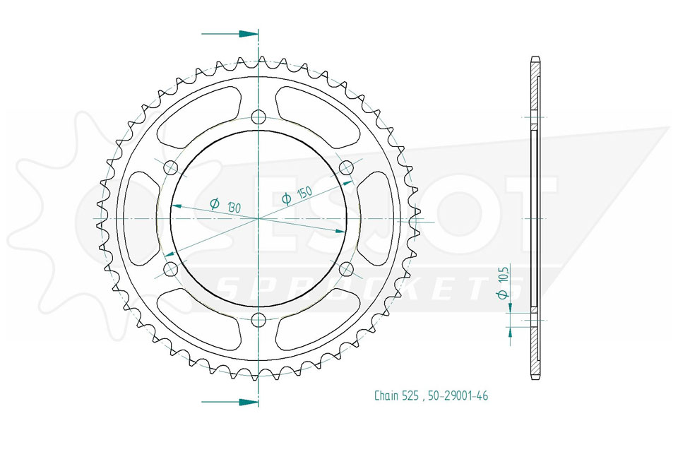 Kettenrad 46 Zähne Stahl 525er Teilung (5/8x5/16)