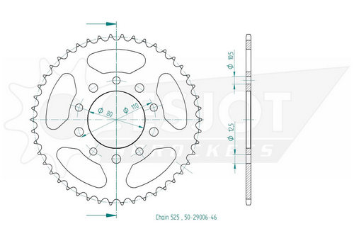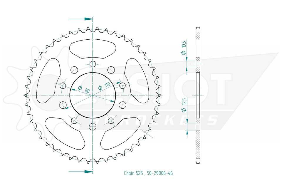 Kettenrad 46 Zähne Stahl 525er Teilung (5/8x5/16)