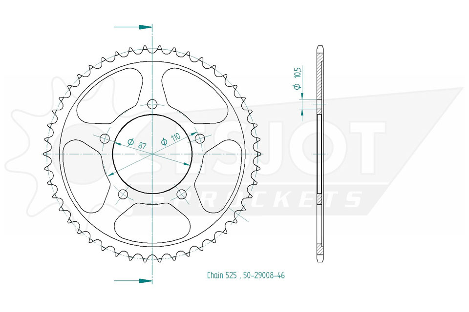 Kettenrad 46 Zähne Stahl 525er Teilung (5/8x5/16)
