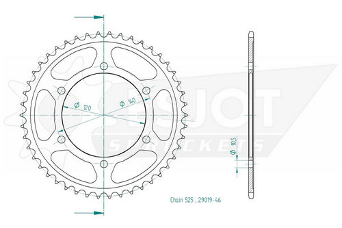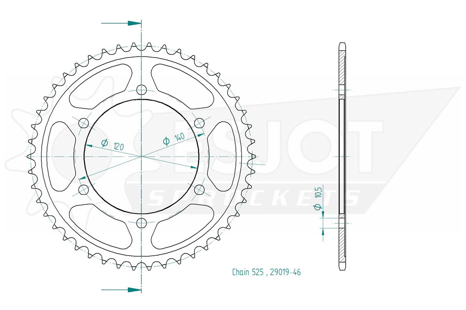 Kettenrad 46 Zähne Stahl 525er Teilung (5/8x5/16)
