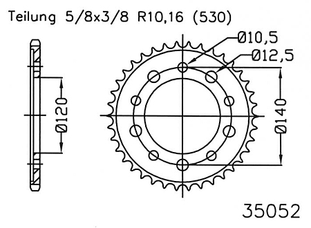 Kettenrad 46 Zähne Stahl 530er Teilung (5/8x3/8)