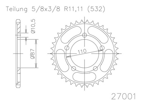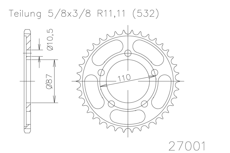 Kettenrad 46 Zähne Stahl 532 Teilung (5/8x3/8)