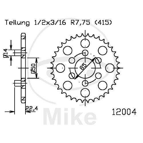 Kettenrad, 46Z, Teil.: 415 schwarz, Innen Ø : 050, Lochkr.: 085