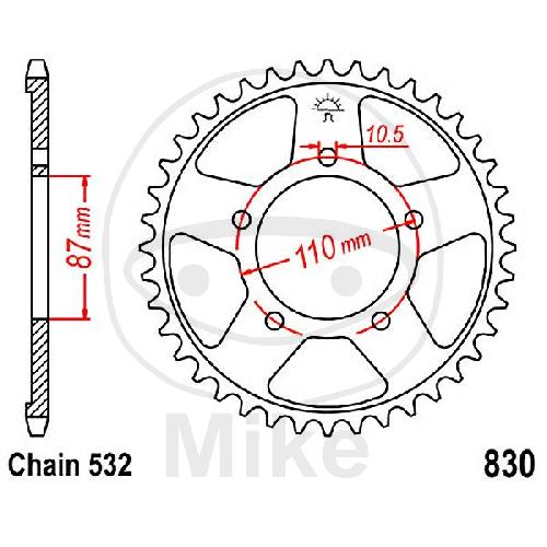 Kettenrad, 46Z, Teil.: 532, Innen Ø : 087, Lochkr.: 110