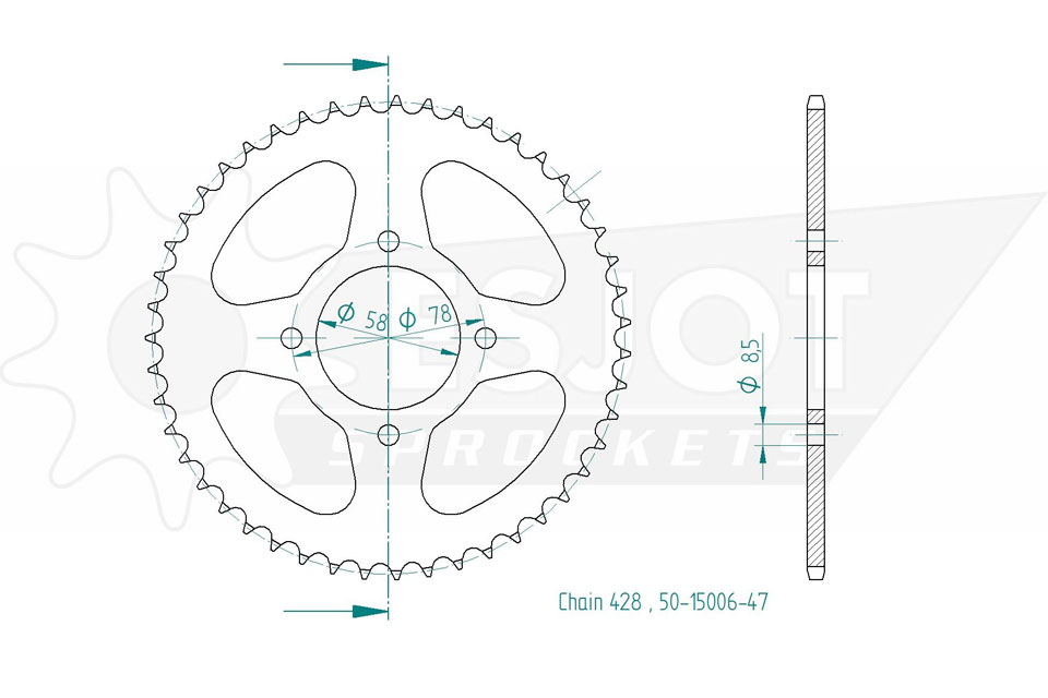 Kettenrad 47 Zähne Stahl 428er Teilung (1/2x5/16)