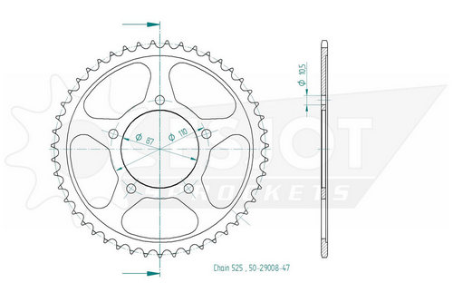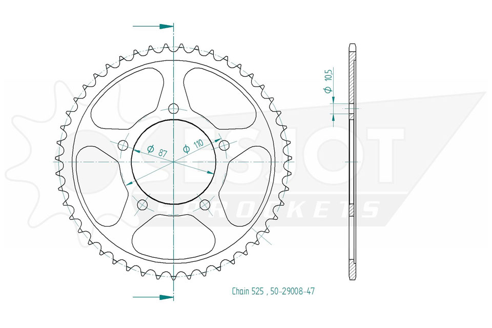 Kettenrad 47 Zähne Stahl 525er Teilung (5/8x5/16)