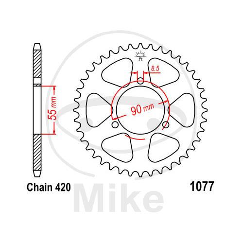 Kettenrad, 47Z, Teil.: 420, Innen Ø : 055, Lochkr.: 090