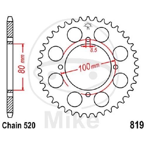 Kettenrad, 47Z, Teil.: 520, Innen Ø : 080, Lochkr.: 100