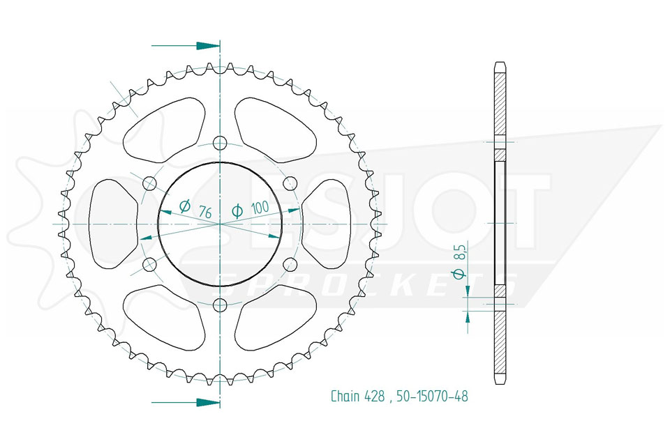 Kettenrad 48 Zähne Stahl 428er Teilung (1/2x5/16)