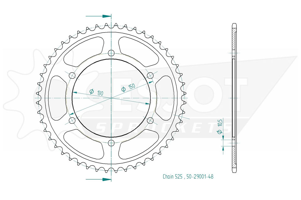 Kettenrad 48 Zähne Stahl 525er Teilung (5/8x5/16)