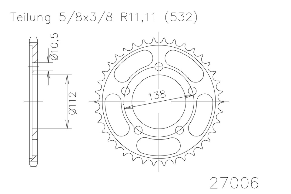 Kettenrad 48 Zähne Stahl 532 Teilung (5/8x3/8)