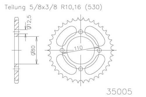 Kettenrad 48 Zähne Stahl 530er Teilung (5/8x3/8)