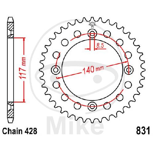 Kettenrad, 48Z, Teil.: 428, Innen Ø : 117, Lochkr.: 140